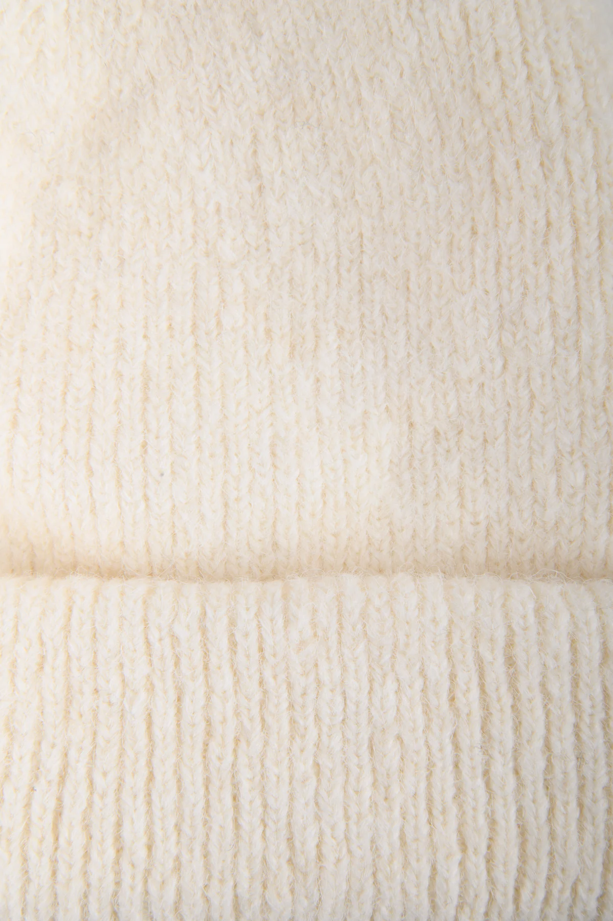 The clean white tone adds a fresh, minimalist touch to any outfit, making it easy to pair with everything from casual denim to bold winter layers. Its ribbed knit texture and snug fit give it timeless appeal, perfect for everyday wear.