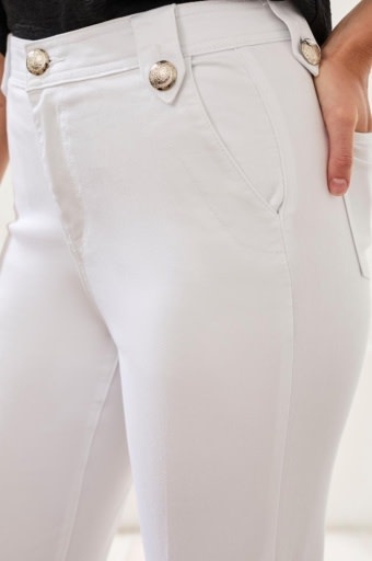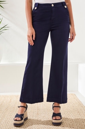 Channel nautical inspiration with the Brooke hugging palazzo marine denim, designed with signature marine details and a flattering palazzo silhouette. Premium stretch denim contours for comfort and style, offering modern versatility and all-day confidence for every occasion.