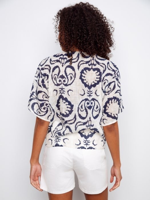 • Printed Cotton Gauze Dolman Blouse With Side Tie