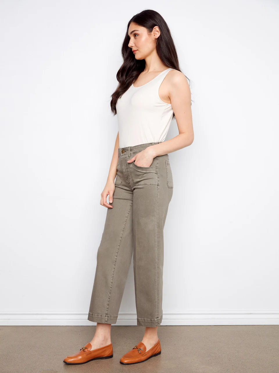 • Welcome sunny days with these cropped wide-leg jeans. With a comfortable stretch, these twill pants offer easy style and versatility. The crisp white color and patch pockets add freshness to your looks. Perfect for pairing with anything from sneakers to sandals, these jeans are a must-have addition to your spring wardrobe.