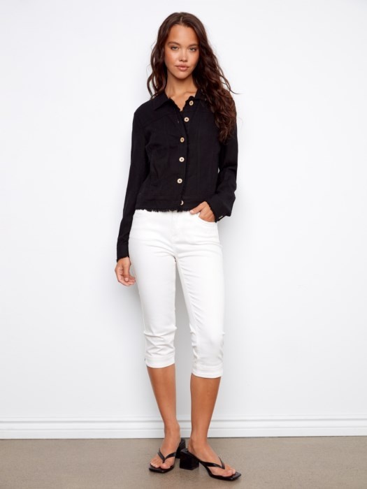 Charlie B Linen Jacket With Frayed Hem C6199YY