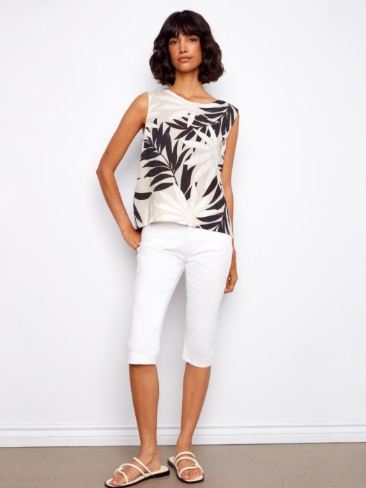 Charlie B Printed Sleeveless Blouse With Back Button Detail C4653B
