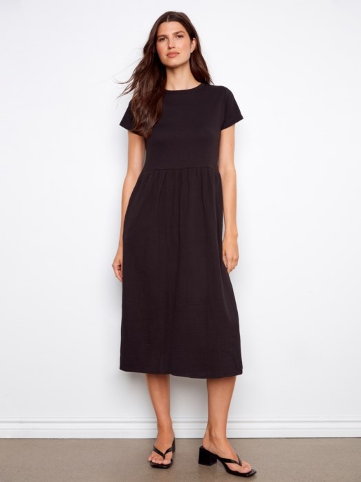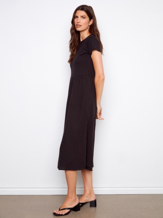 Charlie B Short Sleeve Crew Neck Long Dress C3232