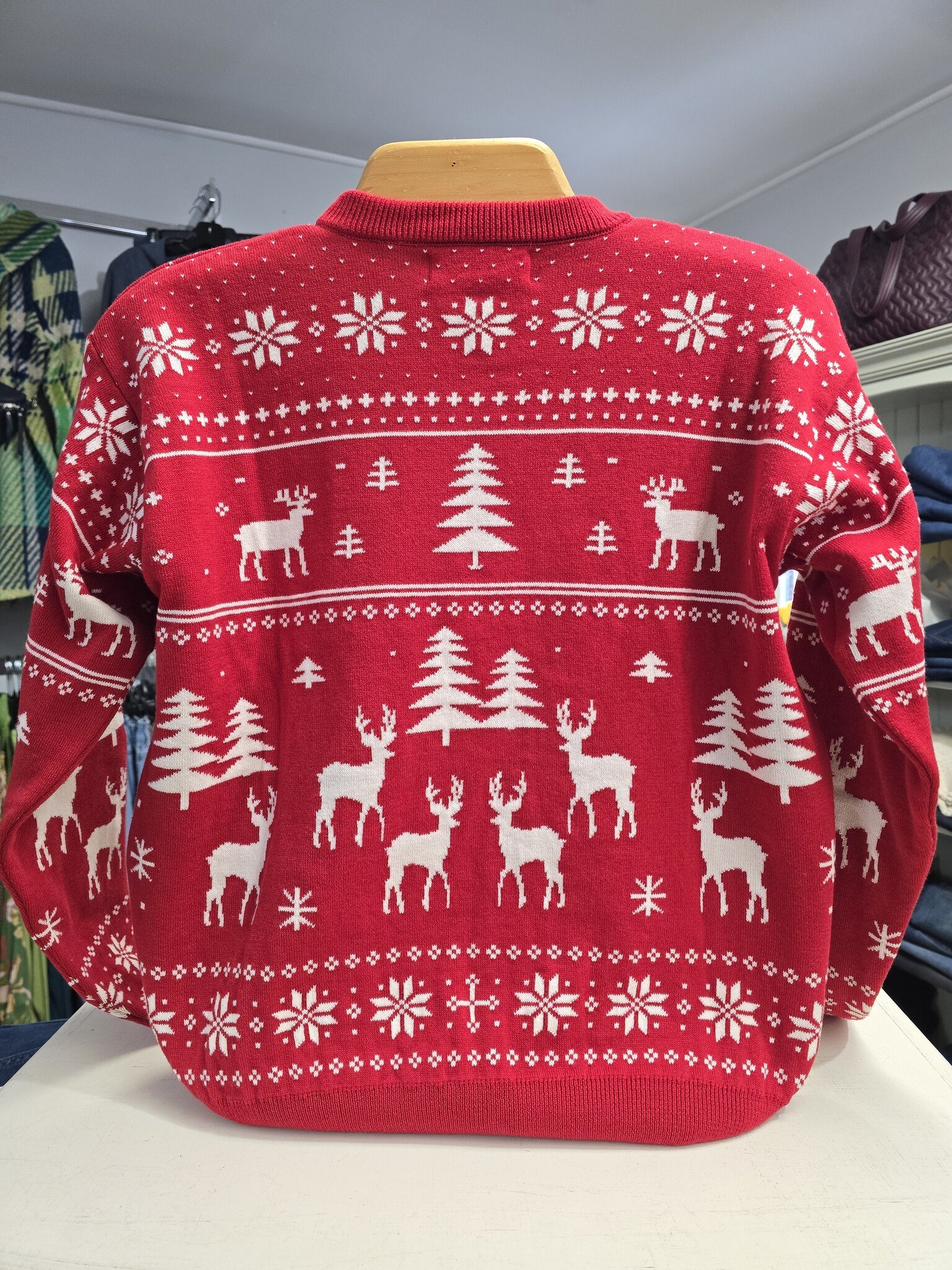 Wrap yourself in festive comfort with our Canada Christmas Sweater, proudly made in Canada and crafted from 100% premium cotton. Designed for cozy winter days, this ultra-soft knit features a classic holiday pattern of snowflakes and deer in warm red and cream tones—perfect for family gatherings, Christmas photos, or fireside lounging.