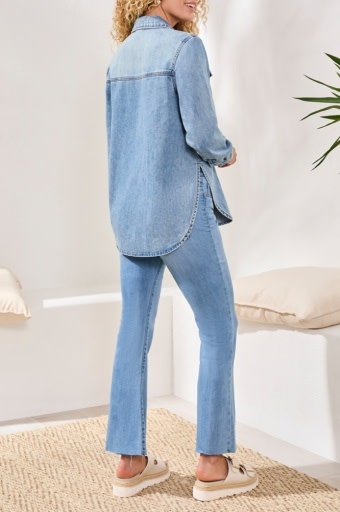 Add timeless appeal to your wardrobe with this classic denim shirt, featuring roll up sleeves for versatility. Crafted from lightweight, non-stretch denim, its relaxed fit and crisp lines make it perfect for layering or wearing solo for effortless spring style, season after season.
