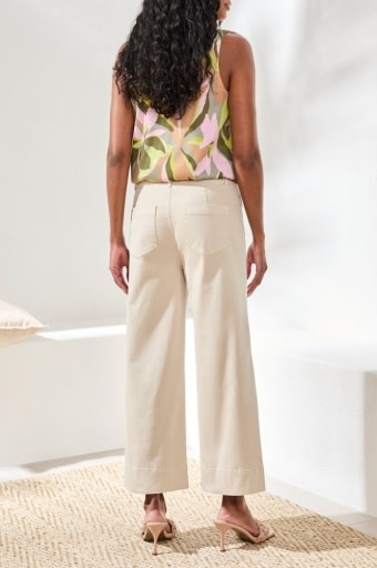 Make a statement in these effortlessly chic palazzo pants, designed with a high-rise waist for a flattering silhouette and dramatic wide-leg flow. A double-button closure and classic fly add a tailored touch, while functional front and back pockets balance style with everyday versatility. Crafted from stretch denim, they move with you for all-day comfort.