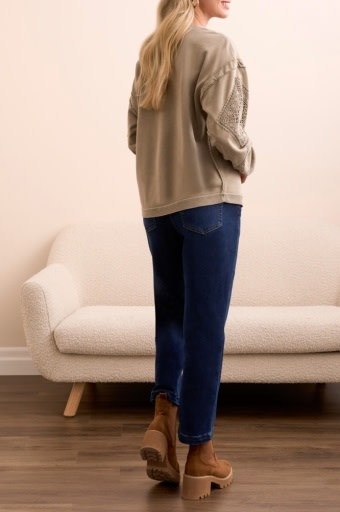 CREW NECK APPLIQUE DTL W/SPECIAL WASH-LT OLIVE LEAF