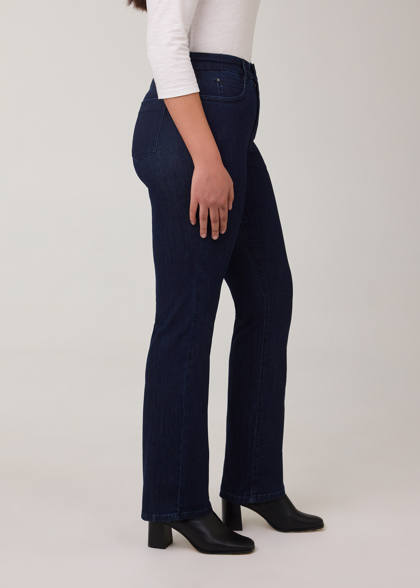 • Say goodbye to hemming and fabric bunching with our perfectly tailored petite bootleg jeans. These jeans offer a neat finish and the bootleg style enhances your silhouette beautifully with boots. Crafted in stretch denim and available in the Pleasant wash, they ensure flexibility and comfort, whether you're off to work or tackling your to-do list.
