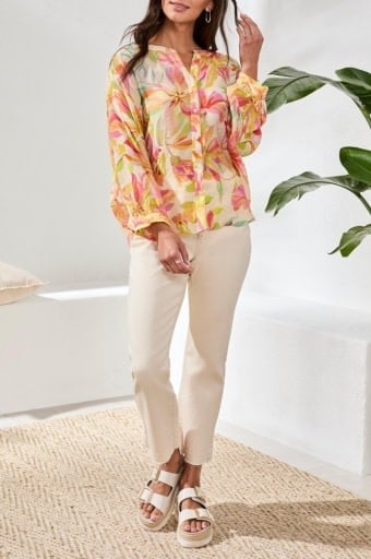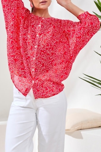 FLOWY DOLMAN SLEEVE BLOUSE WITH SELF-COVERING BUTTONS 5539O