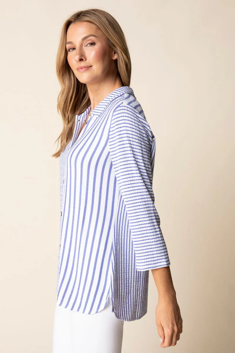 • The classic collar and button-up front give it that tailored look you love, while the tunic length provides flattering coverage — ideal for pairing with slim pants, denim, or leggings. Wear it fully buttoned for a crisp finish or layered open over a tank for a more relaxed vibe.