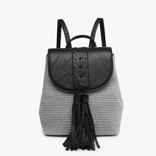• BP2277 Eleanora Straw Backpack with Vegan Leather Detail – Black & Grey