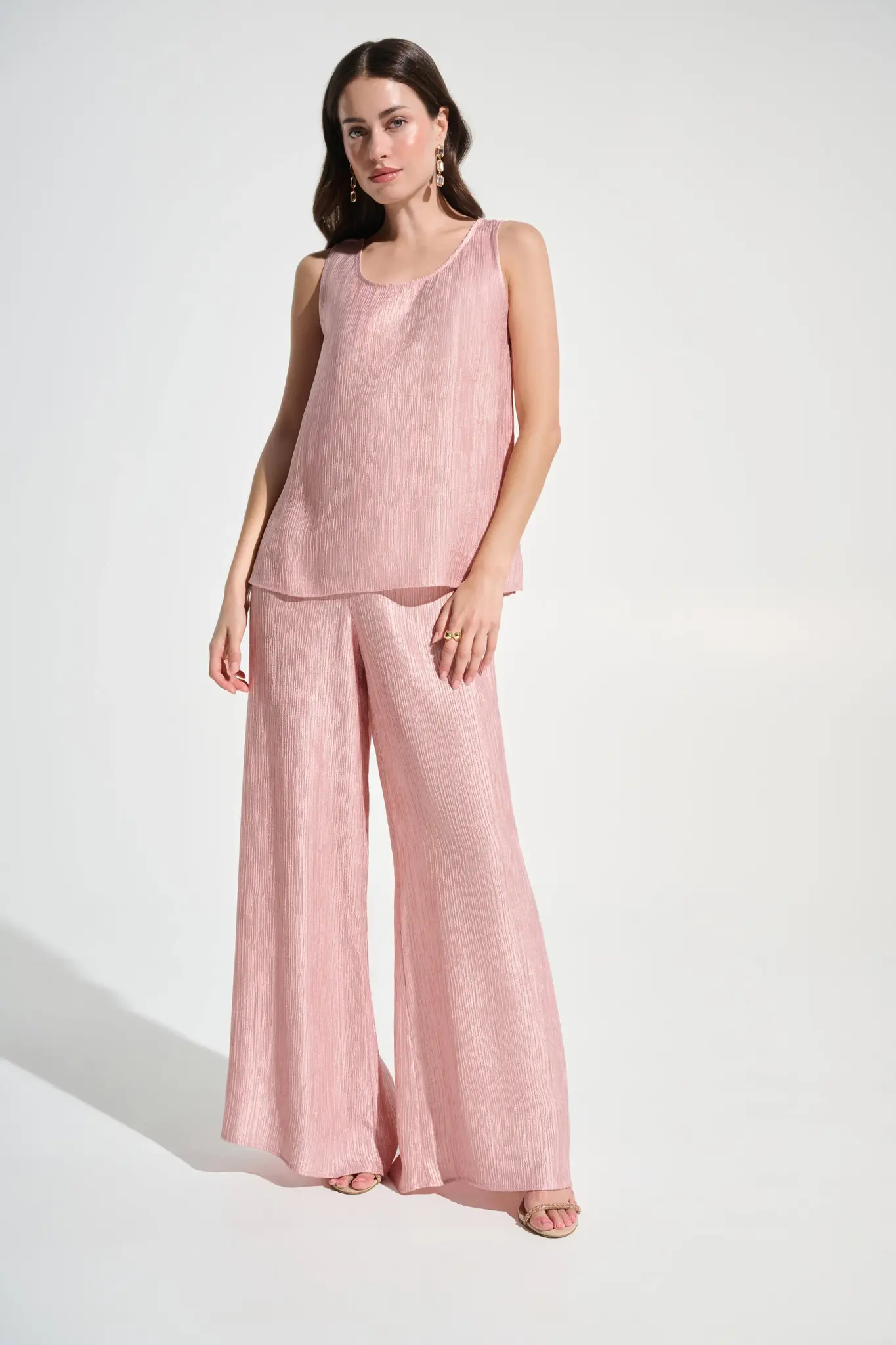 • Crafted in luminous crinkle jacquard, this sleeveless top is defined by its clean scoop neckline and streamlined shape. Its subtle sheen and straight fit make it an elegant essential for layering or standing out on its own.