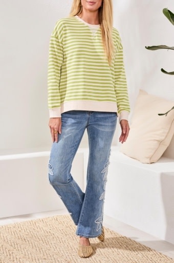 Enjoy cozy comfort and bold color in this long sleeve stripe crew top, crafted from French terry for an ultra-soft feel. The colorblock combo brings playful edge, while the relaxed fit keeps you feeling at ease every season.