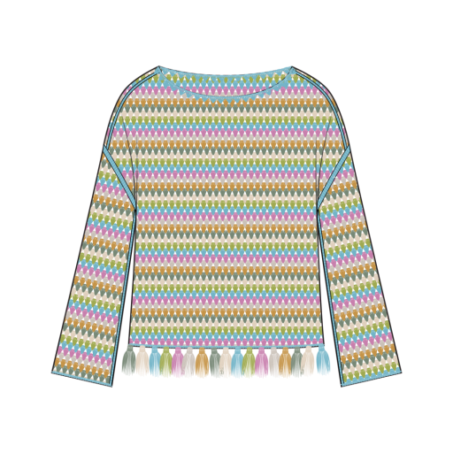 Whimsical and fun, this bell sleeve sweater features lively tassels and a bright color palette. Made from pure combed cotton for unbeatable softness, it’s the perfect layer for playful days or nights out with friends.