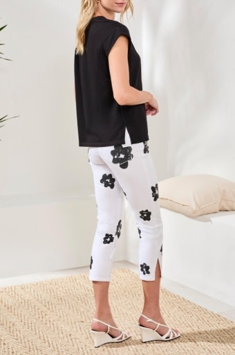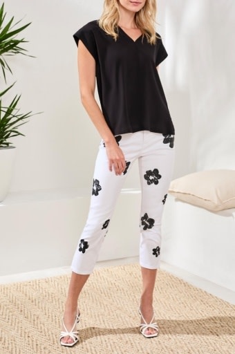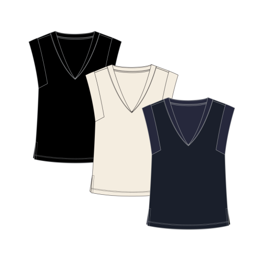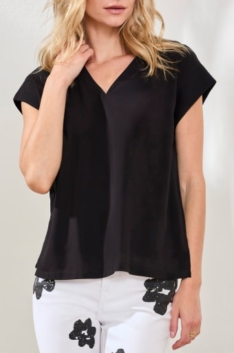 MIXED MEDIA CAP SLV V- NECK T- BLOUSE 6196O