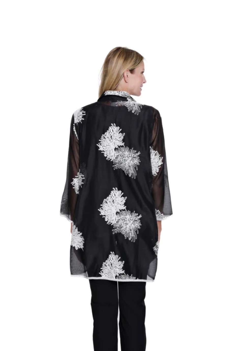 • Light and beautifully detailed, this crinkle sheer shirt is adorned with allover embroidery that adds soft texture and artisanal charm. The button-front silhouette is complemented by 3/4-length sleeves and a hi-low hem, creating graceful movement and an effortlessly polished look. Crafted in airy polyester, it’s a delicate layering piece designed for refined everyday elegance.