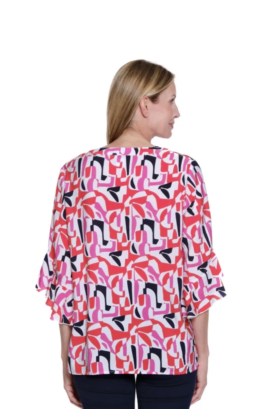 • Softly expressive with graceful movement, this printed popover top is crafted in textured crinkle fabric for effortless elegance. A clean band collar and front placket lend subtle structure, while elbow-length flounce sleeves add fluidity and feminine charm. Designed with an easy pullover silhouette and finished in a smooth rayon-nylon blend, it drapes beautifully for polished, everyday wear.