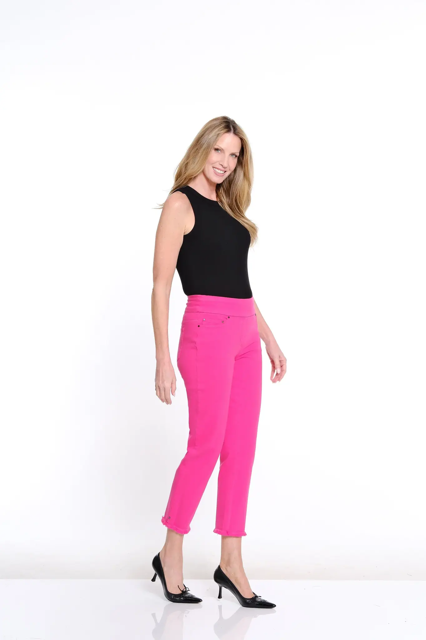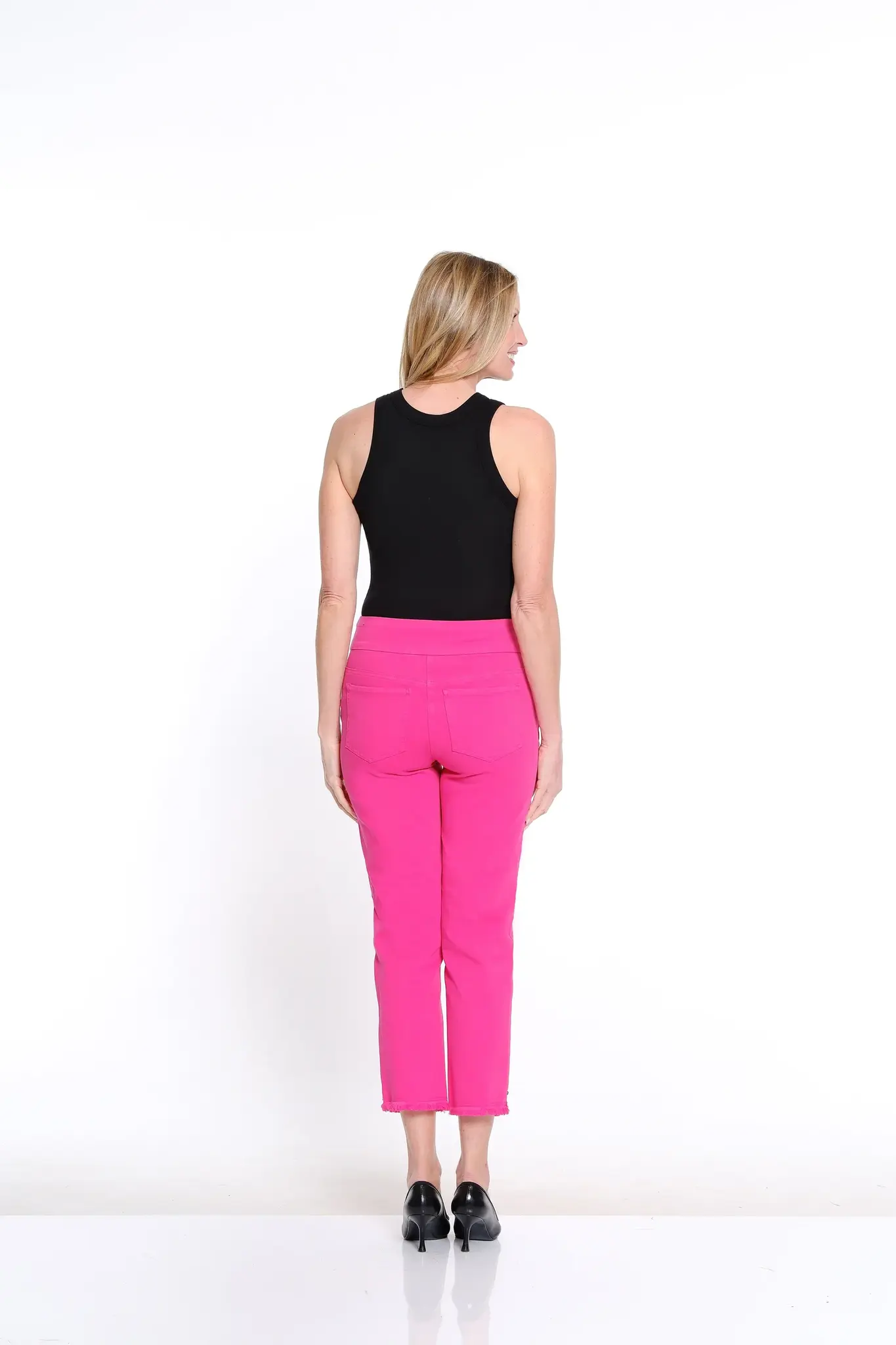 • Easy to wear with a touch of edge, this pull-on ankle jean features a classic 5-pocket design, soft garment-dyed finish, and a fringe hem for laid-back flair. Crafted from a comfortable cotton-blend denim with stretch, it’s an effortless everyday go-to.