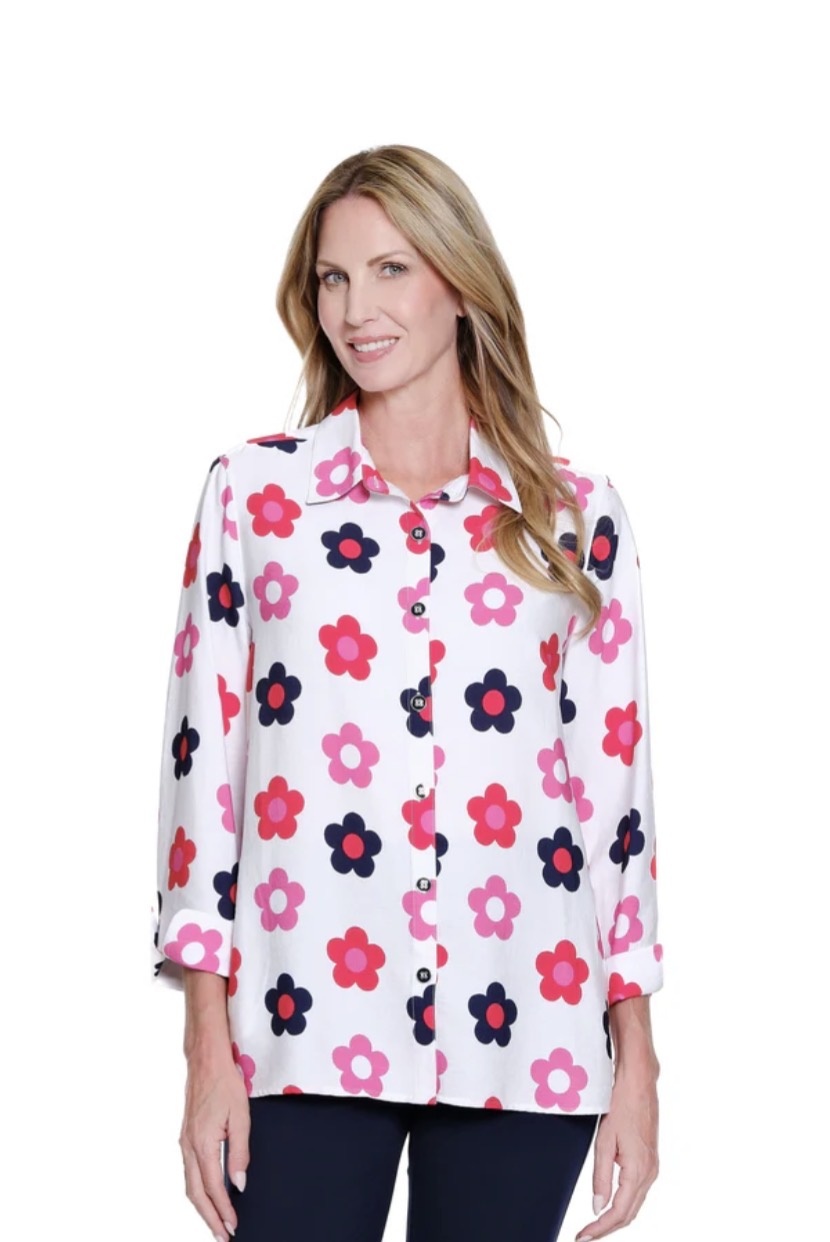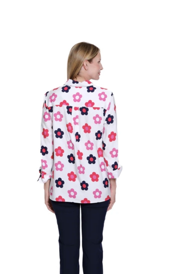 • This turn-up cuff 3/4 sleeve button front shirt is a versatile wardrobe staple with a polished yet relaxed feel. Crafted from a lightweight rayon/nylon woven fabric, it offers a smooth drape and breathable comfort. The printed design adds visual interest, while the classic button-front silhouette makes it easy to dress up or down for everyday wear.