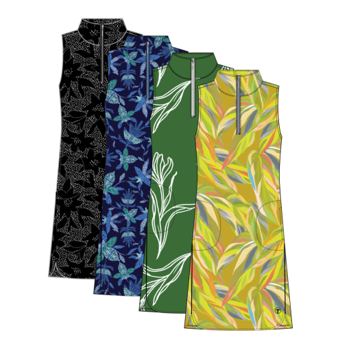 Show off your sporty side with this stretch-packed dress styled with an active attitude. It features a mock neckline with a zip-up accent, front pockets, 36" length, and inner shorts that let you go toe to toe with your workouts in trendy confidence. The printed fabric flaunts fast-drying, moisture-wicking, anti-bacterial, and UPF 50+ technology so you can crush the pickleball court in breezy comfort.