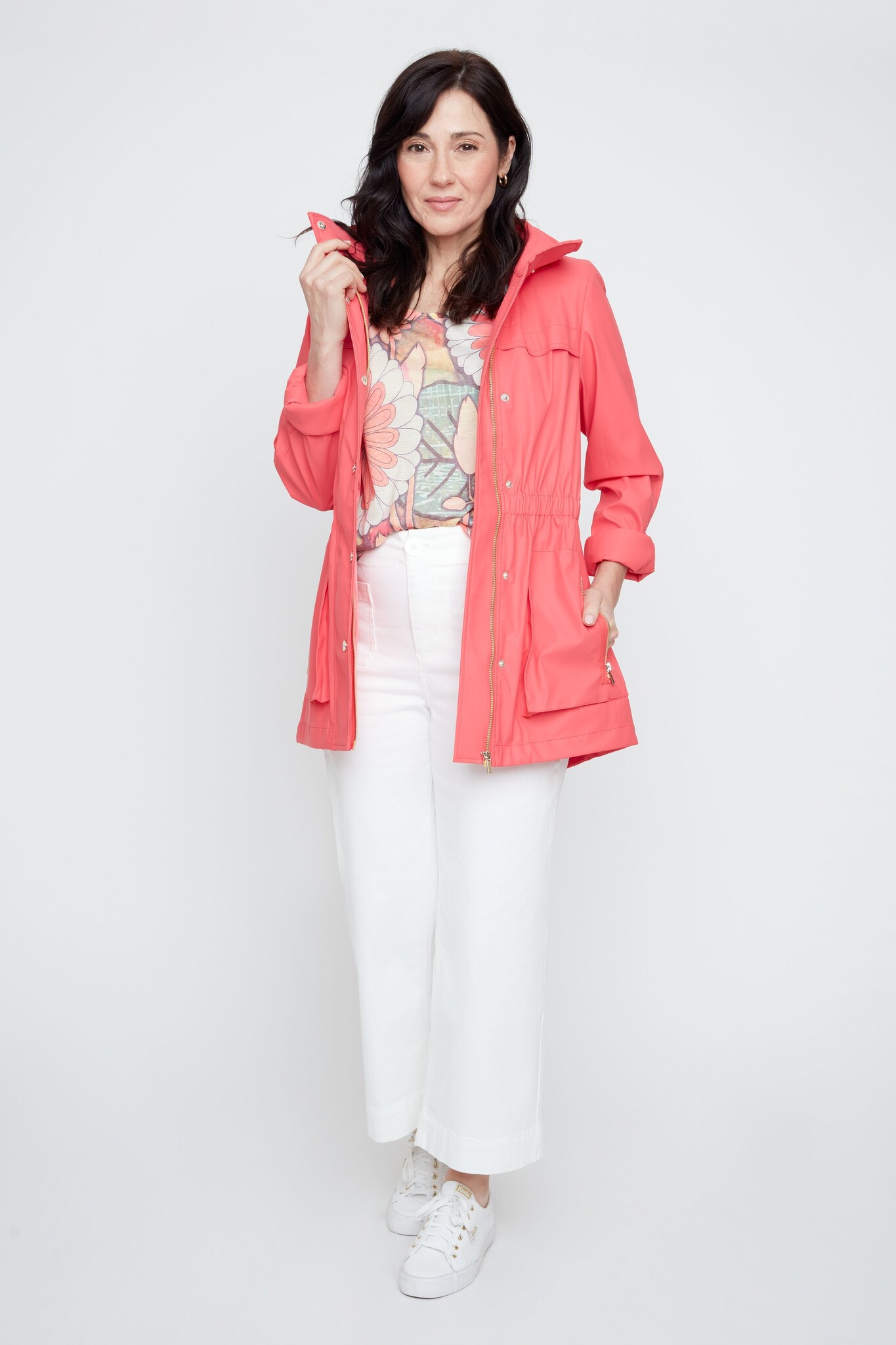 Crafted for both style and practicality, the Renuar Zip-Up Rain Jacket is your go-to outerwear essential for unpredictable weather. Designed with a sleek, flattering silhouette, this lightweight jacket features a full front zip closure, an adjustable drawstring waist to tailor your fit, and a functional hood to keep you protected from the elements.