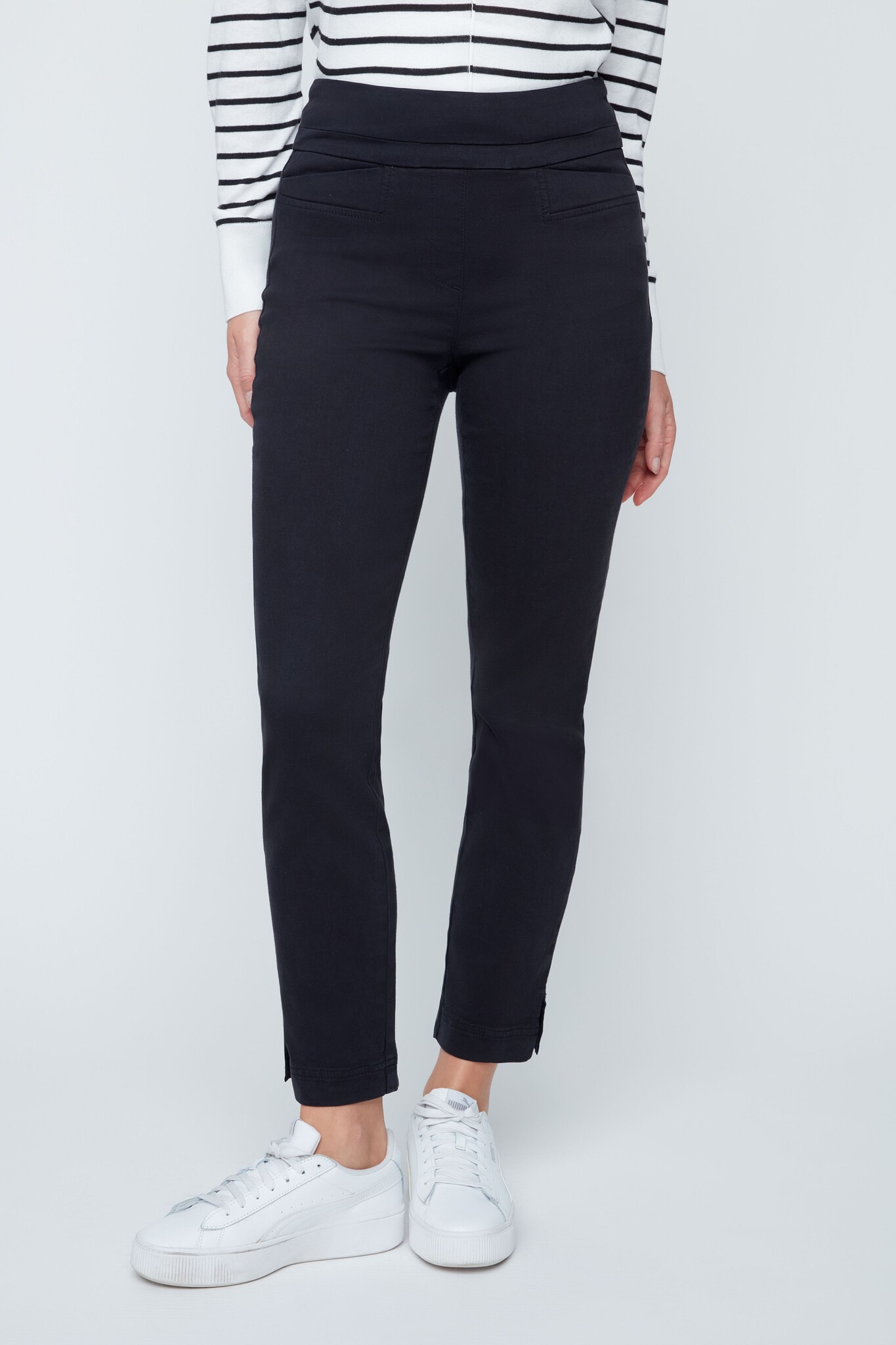• Pull-on ankle pant with comfort waistband