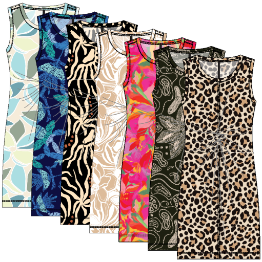 Celebrate every moment in this sleeveless dress with subtle front detailing, crafted for warm-weather adventures. The printed jersey fabric hugs gently, keeping you cool and confident from sunrise to sunset in resort-inspired colors.