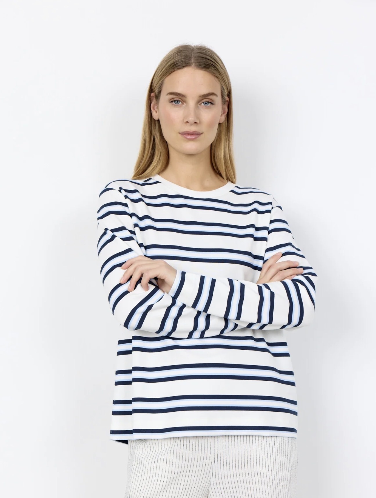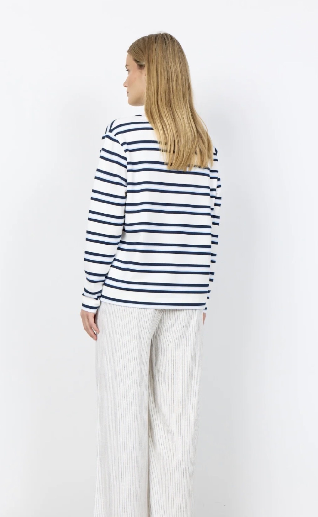 • SC-BARNI 52 Blouse is crafted from 48% Modal, 48% Polyester, and 4% Elastane. It features a classic round neck, long sleeves, and a striped print for a touch of elegance. Pair it with tailored trousers or your favorite jeans for a cool, unique look.