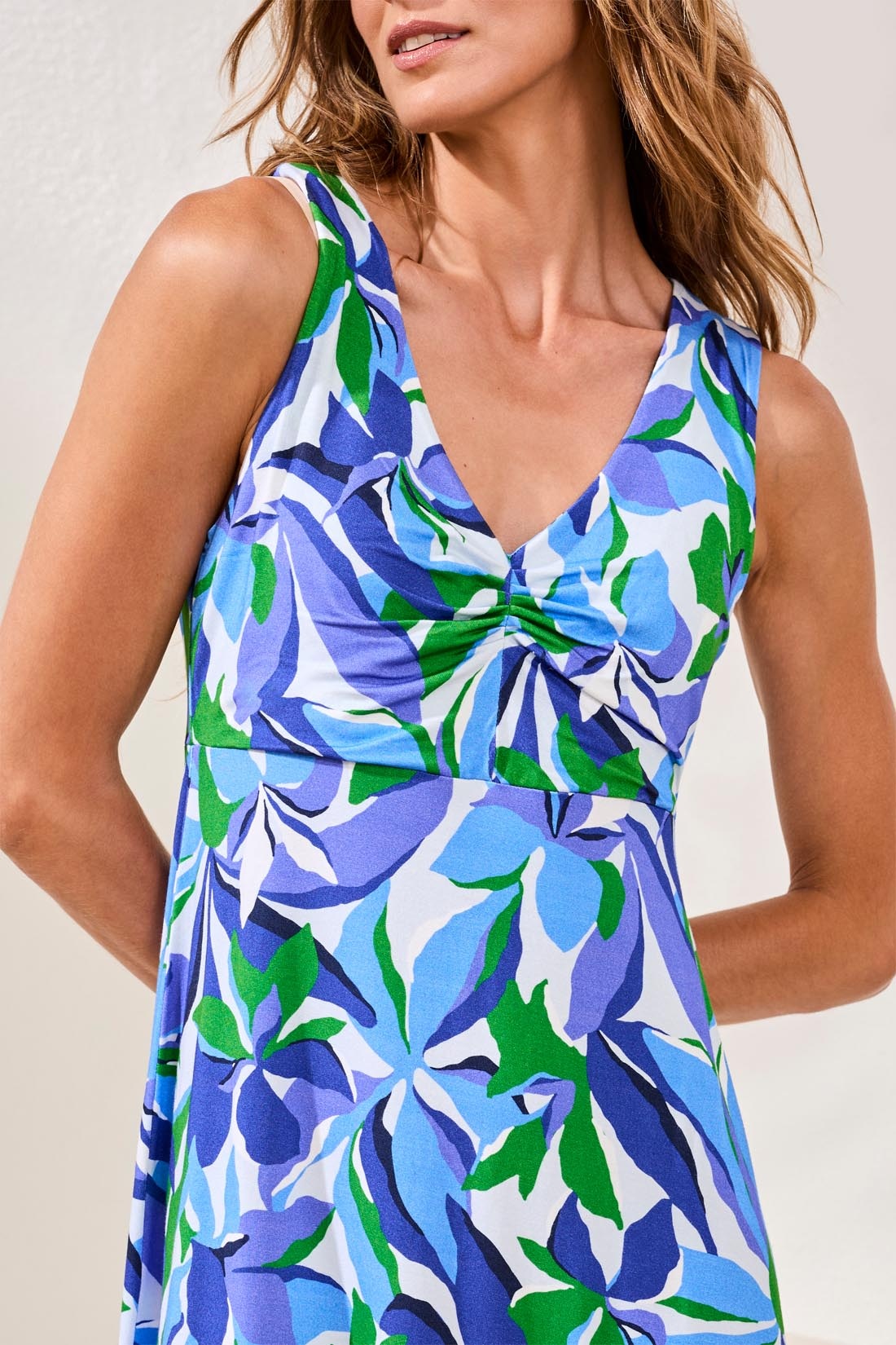 • This sleeveless printed knit dress is crafted from stretchy printed jersey for comfort and movement. Its vibrant pattern, relaxed shape, and breathable hand make it easy to wear anywhere the season takes you, whether casual or dressed up.