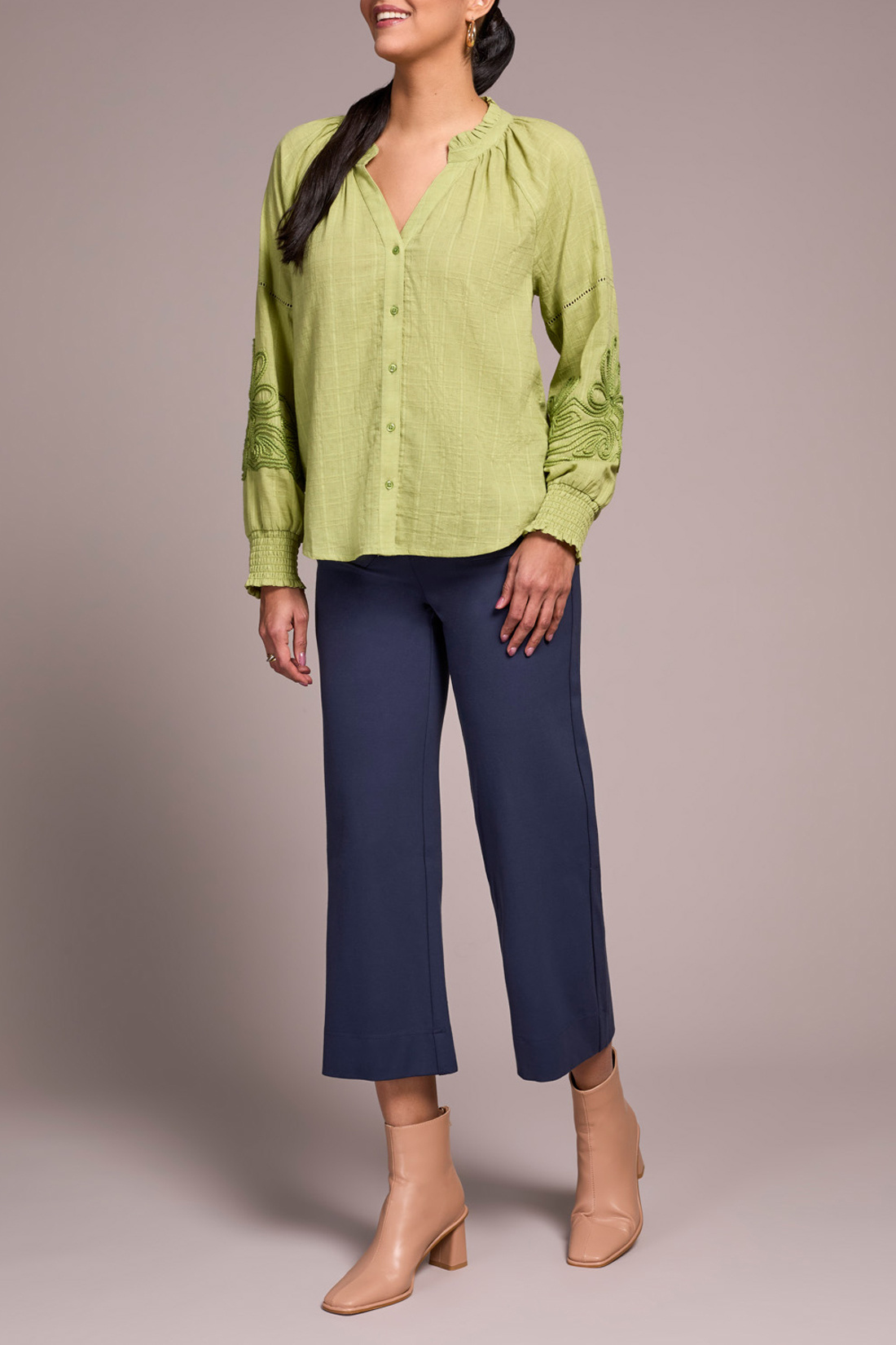 • Add a pop of fresh colour to your wardrobe with this Tribal Long Sleeve Blouse in vibrant Wasabi. Crafted from 100% cotton, it offers a soft, breathable feel you’ll love wearing all day. Thoughtful appliqué detailing on the sleeves adds a stylish, feminine touch, while the relaxed fit makes it easy to pair with jeans, trousers, or skirts. Perfect for effortless everyday style with a hint of flair.