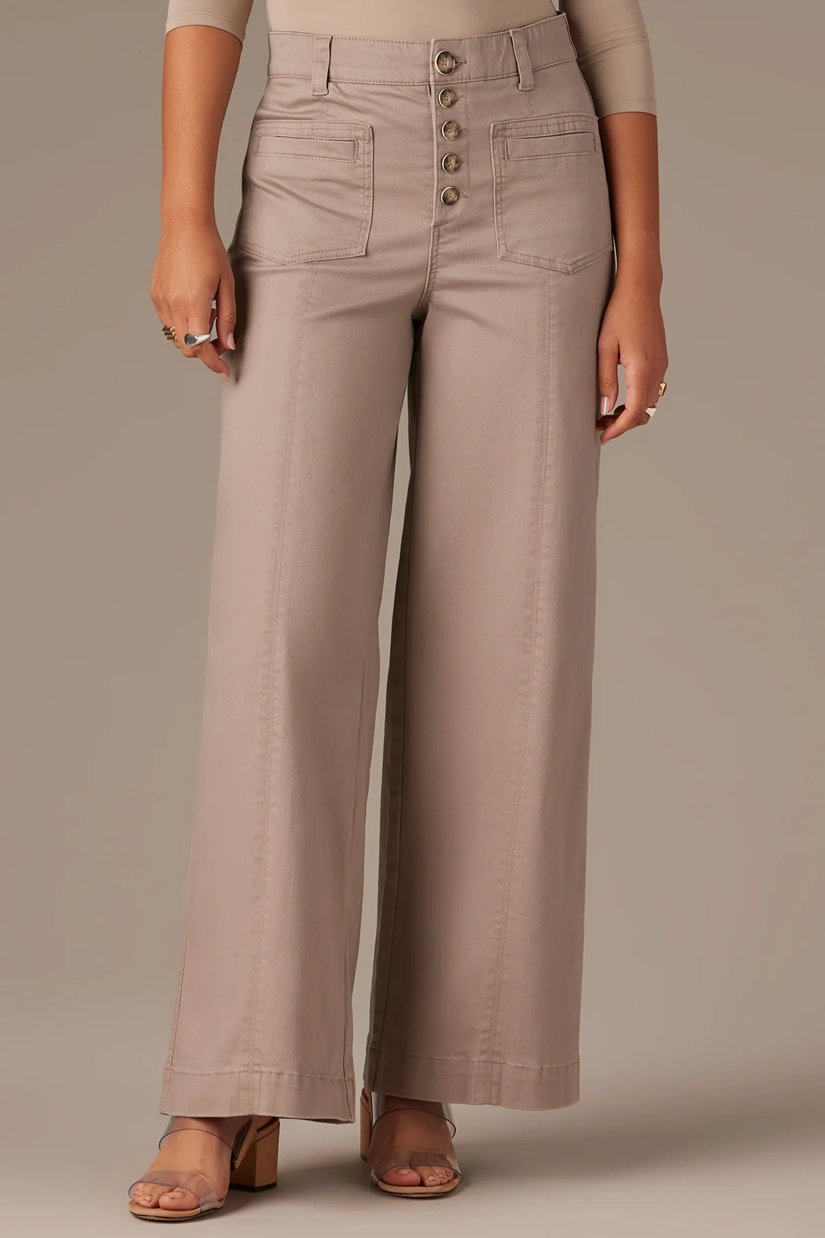 • These Wide Leg pants are fitted through the hips with a relaxed, wide opening through the legs. Made with a V-yoke, button fly closure, and Contour Shape Technology for a tailor-made, flawless fit and thoughtful design details.
