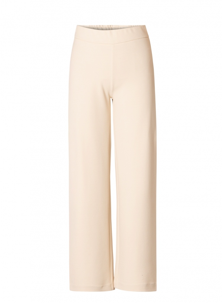 • Yarah is a wide-leg trouser in recycled polyester with an elasticated waistband and closed welt pockets on the back panel.